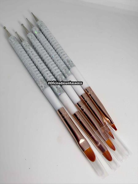 Kit Pincel para Gel + Boleador 2 em 1 - 5 unidades
