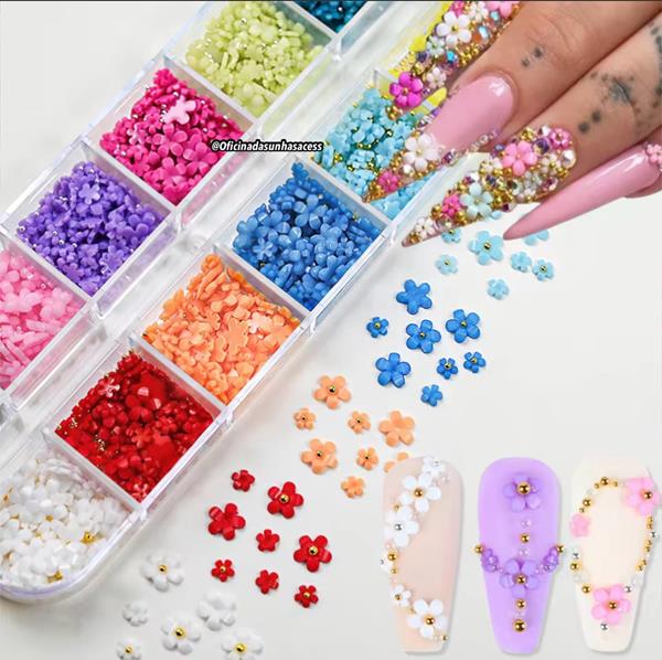 Kit flor 3D em Resina Decoração Nail Art